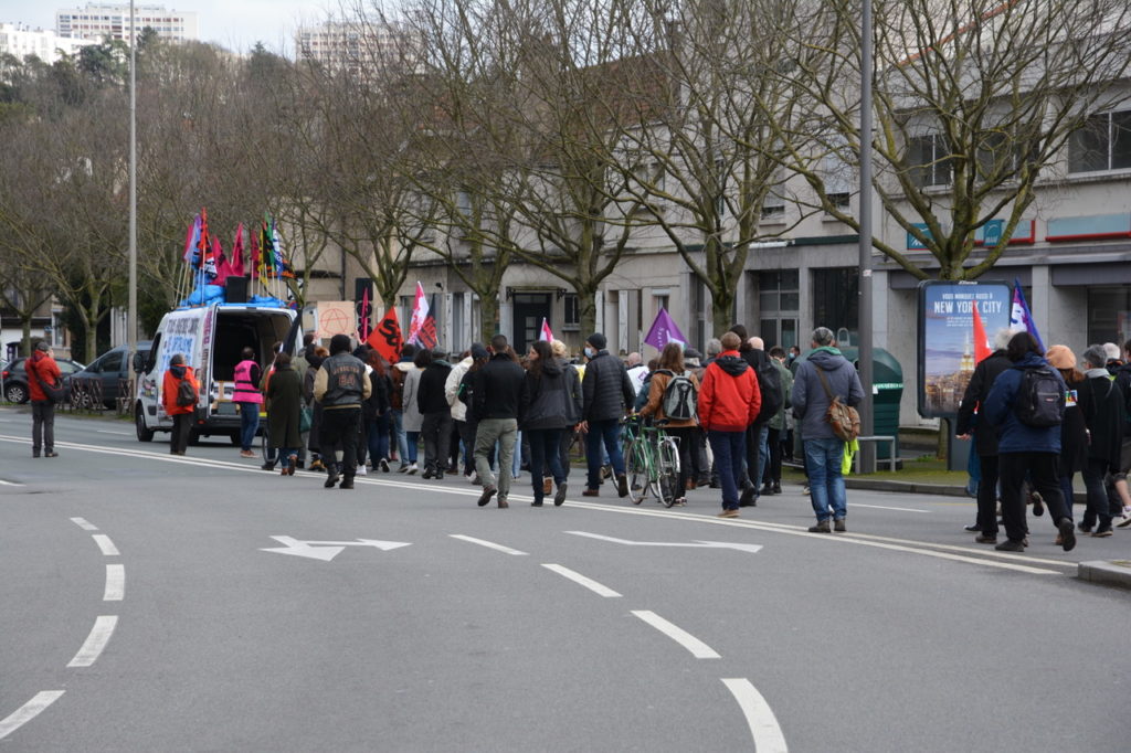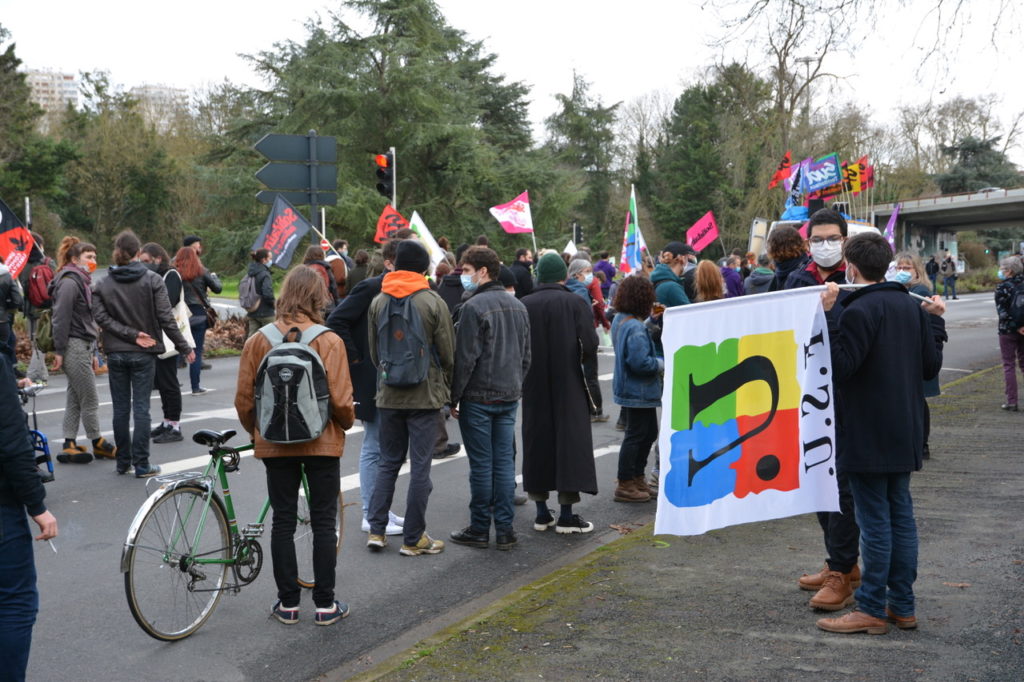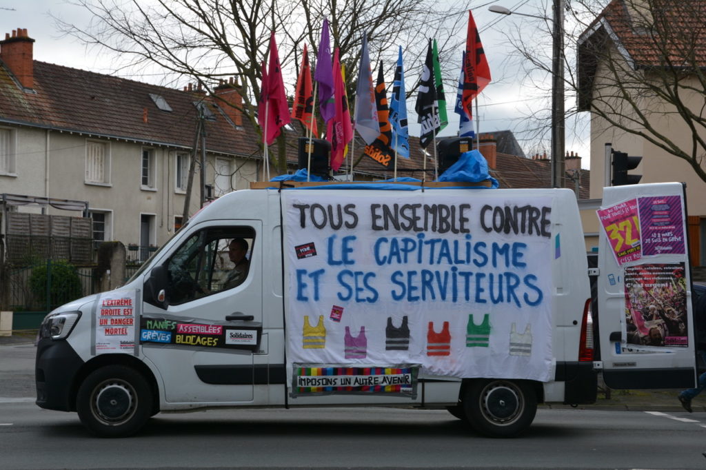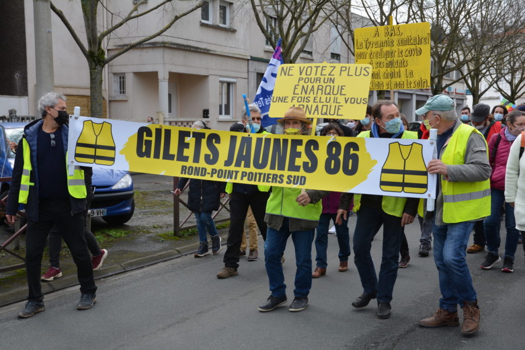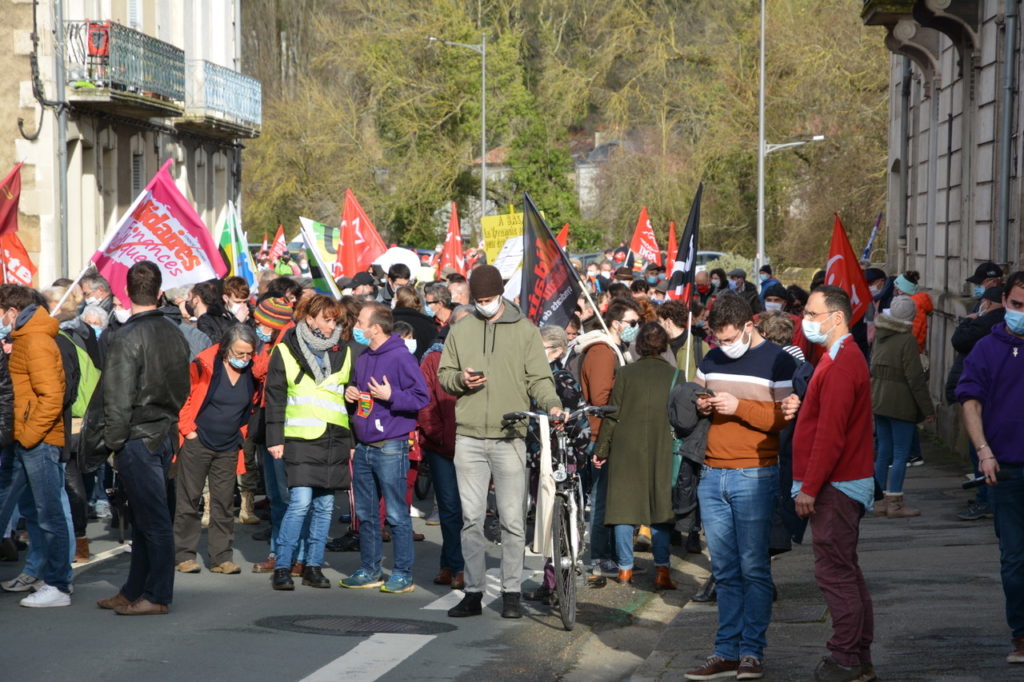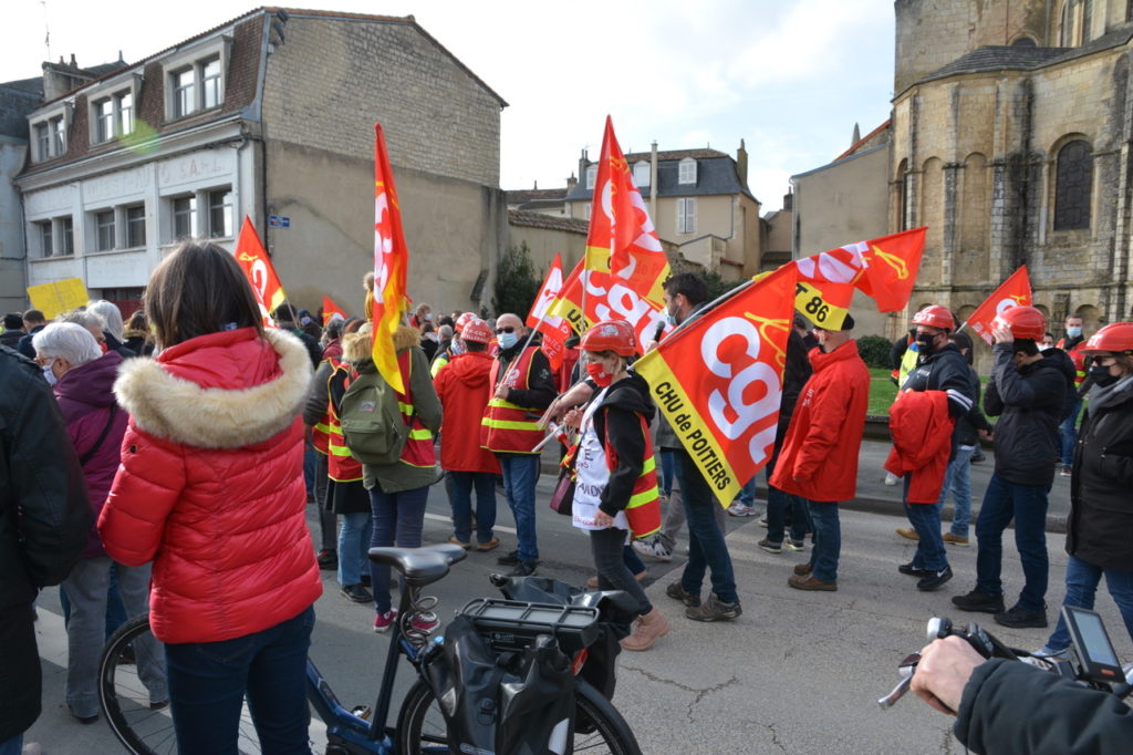 Présence conséquente de Solidaires avec des slogans percutants et une sono efficace, la CGT elle, n’avait pas mobilisée les foules avec quand même le secteur Energie et des drapeaux du CHU. Un peu de FSU aussi et des drapeaux du PCF, du MJC, de l’UCL et des gilets jaunes « rond-point Poitiers-Sud » avec une belle banderole. Au total, environ 300 personnes.