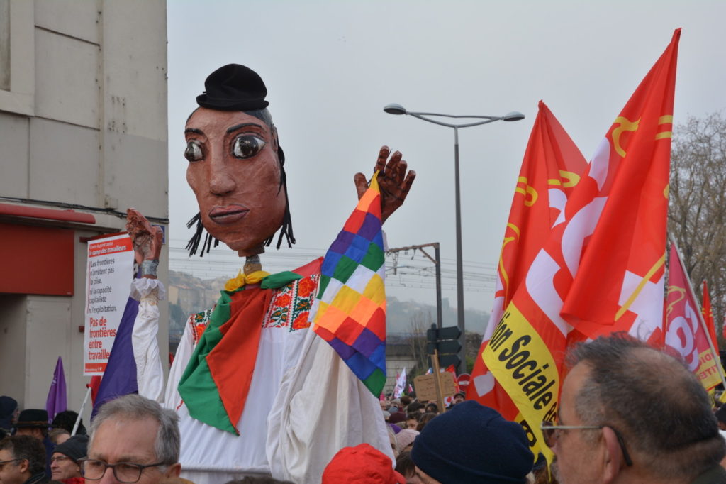 Dès 13 h, on sentait que ce serait du lourd, de nombreux.ses manifestant.e.s arrivant dès ce moment. A 14 h, on avait déjà du mal à se déplacer porte de Paris et à 14 h 30, il fallait bien se décider à bouger, à avancer pour désengorger le point de rendez-vous.