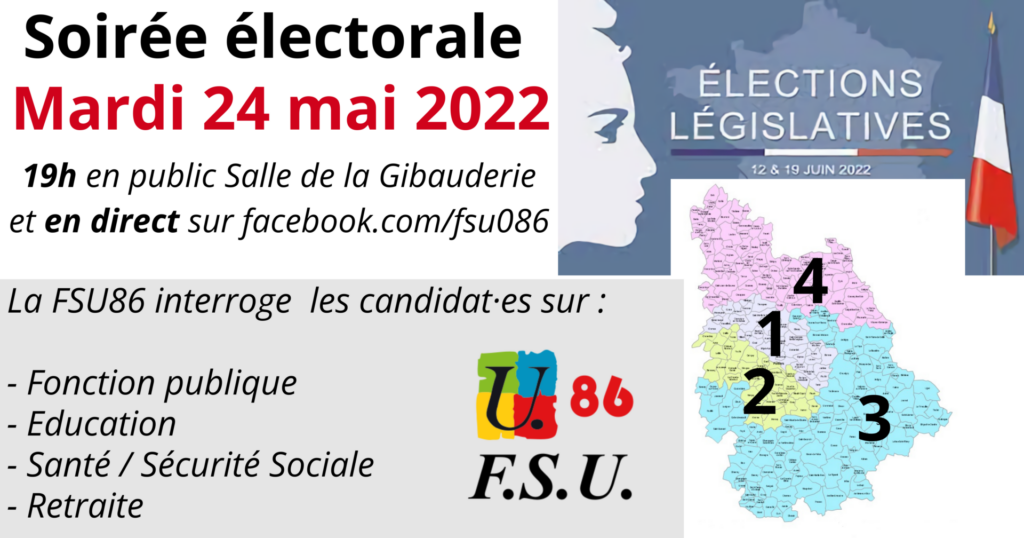 La FSU de la Vienne est au regret d’annoncer l’annulation de la soirée démocratique en public qu’elle organisait le 24 mai prochain faut d’une diversité suffisante des formations politiques présentes sur notre territoire.