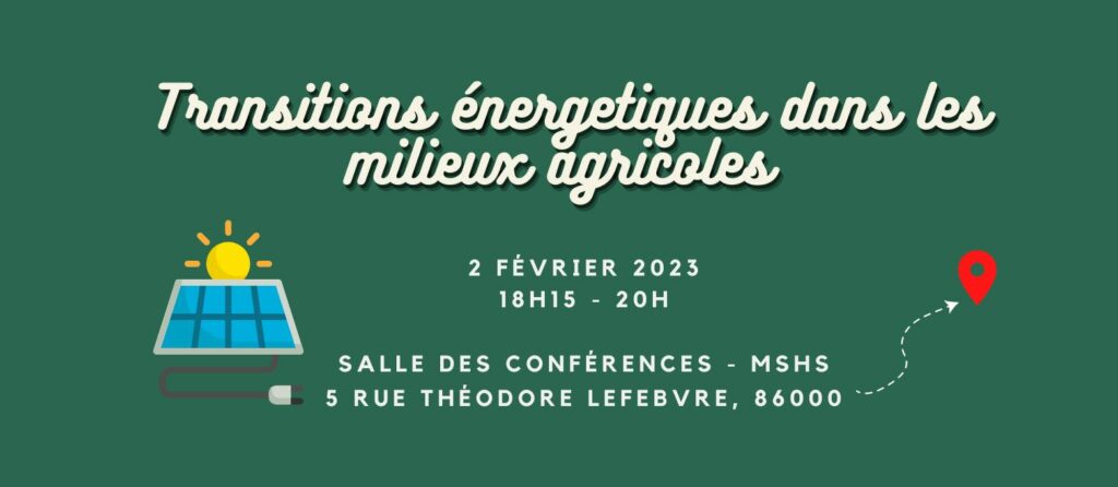 la conférence débat « Transitions énergétiques dans les milieux agricoles« , co-organisée avec les étudiants du Master 2 Gestion et développement des territoires en transition (GESTT)
