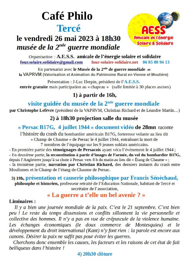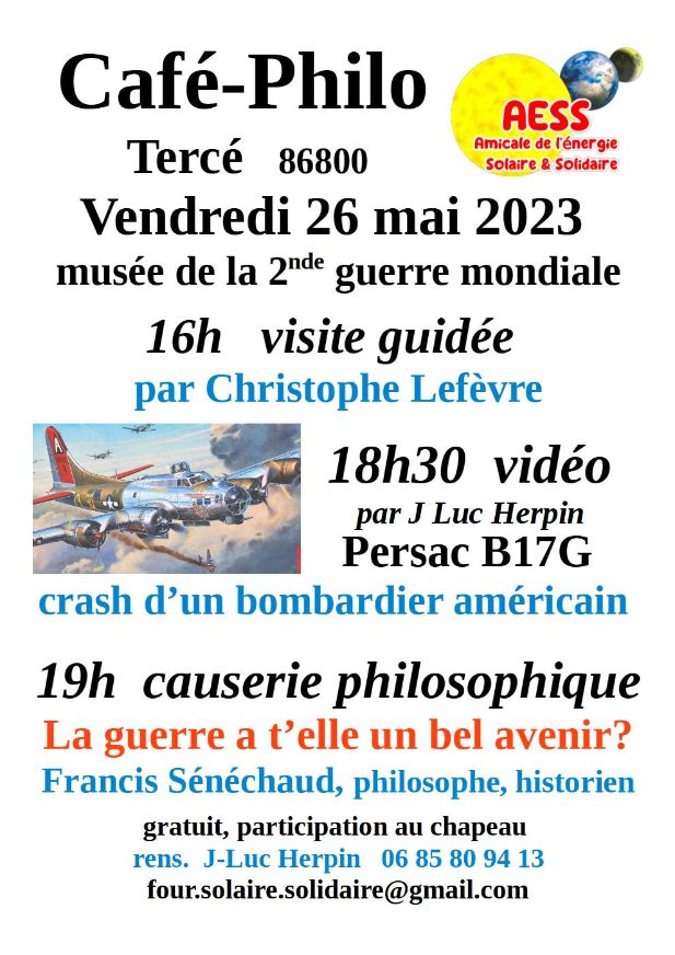 – et donc le Café Philo à 19h pour une causerie sur « La guerre a t-elle un bel avenir? »