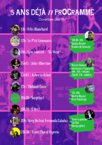 Samedi 10 juin, de 11h à 23h30, vous pourrez retrouver des artistes et des musiciens qui ont marqué, vous pourrez aussi en découvrir d’autres, faire sérigraphier un T-shirt aux couleurs de l’événement, vous pourrez retrouver des copains, vous taper dans le dos et trinquer aux bons moments passés ensemble !