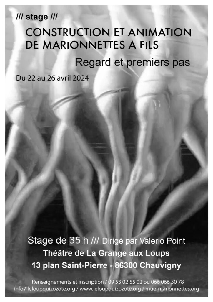 La technique de la marionnette à fils demande de faire preuve de rigueur et d’observation, mais une marionnette bien construite est une marionnette agréable à animer. Comprendre l’anatomie, savoir faire des articulations adaptées, placer les fils au bon endroit et concevoir un contrôle ergonomique sont les points de départ de la construction d’une bonne marionnette. Cette construction performante permettra de prendre goût à jouer avec la gravité afin de créer l’illusion en tirant quelques fils. Ces fils, qui font la particularité de ces marionnettes, mettent une distance entre elles et le marionnettiste. De cette distance naît une fragilité et une forme de proximité. Tout près du marionnettiste évolue une créature indépendante et autonome qu’il s’agit d’écouter, d’apprivoiser et d’accompagner.…