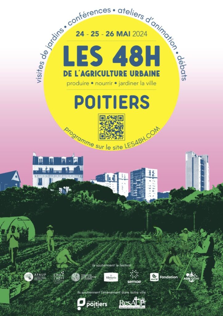 Le festival participatif des 48h de l’agriculture urbaine a lieu les 24, 25 et 26 mai 2024. Il s’agit de la deuxième édition de ce festival à Poitiers (neuvième édition au niveau national).