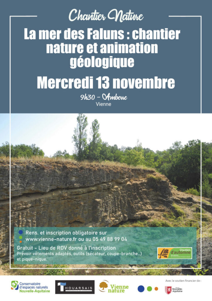 Les carrières de Moulin-Pochas regorgent de fossiles marins. Aidez-nous à préserver ce site unique en participant à un chantier d’entretien le matin. L’après-midi, les participants pourront participer à une visite du site, guidée par un géologue.