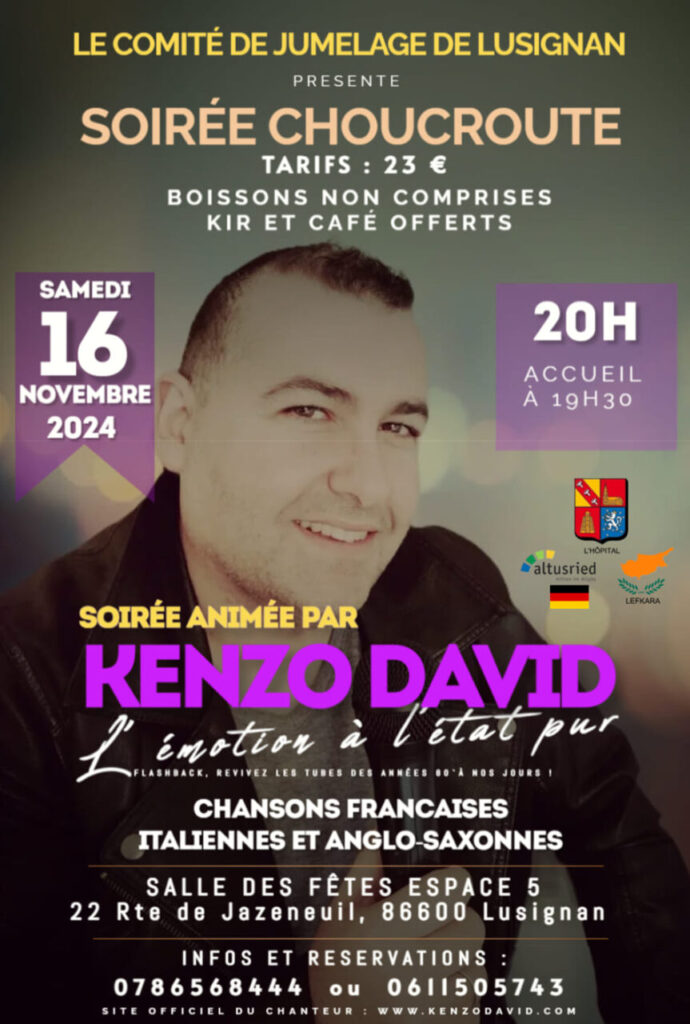 Soirée choucroute organisée par le comité de jumelage de Lusignan le Samedi 16 novembre 2024 à partir de 20h. Salle Espace 5.