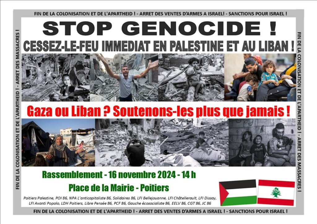 Samedi 16 novembre à 14 h place de la mairie à Poitiers.