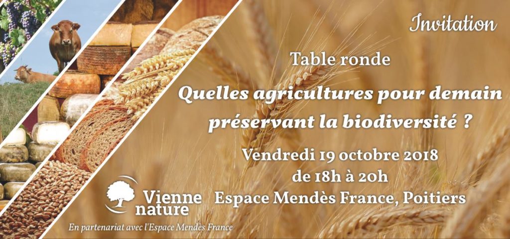 Quelles agricultures pour demain préservant la biodiversité ? qui se déroulera le vendredi 19 octobre à 18h à l’Espace Mendès France à Poitiers.