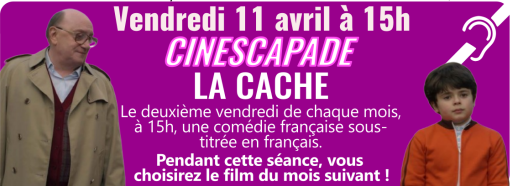 Le deuxième vendredi de chaque mois, à 15h au cinéma de Gençay, venez voir une comédie française sous-titrée en français. Pendant cette séance, vous choisirez le film du mois suivant !