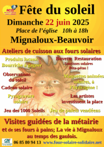 La 4ème fête du soleil se tiendra place de l’église de Mignaloux-Beauvoir dimanche 22 juin de 10h30 à 18h.