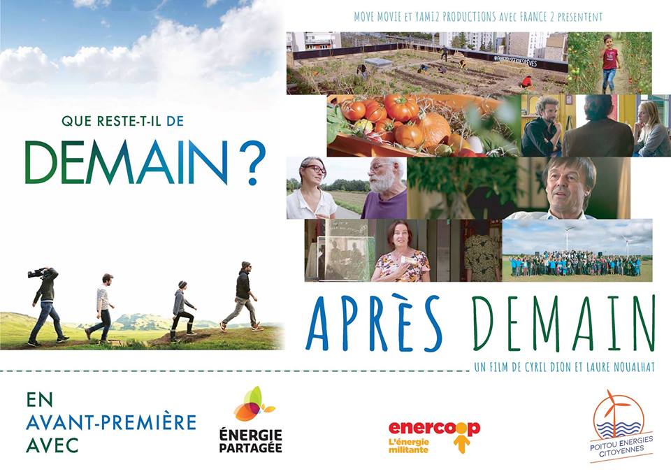 Poitou Energies Citoyennes, membre d’ Énergie Partagée, organise l’avant-première du film « Après-Demain » de Cyril Dion et Laure Nouailhat sur Poitiers.