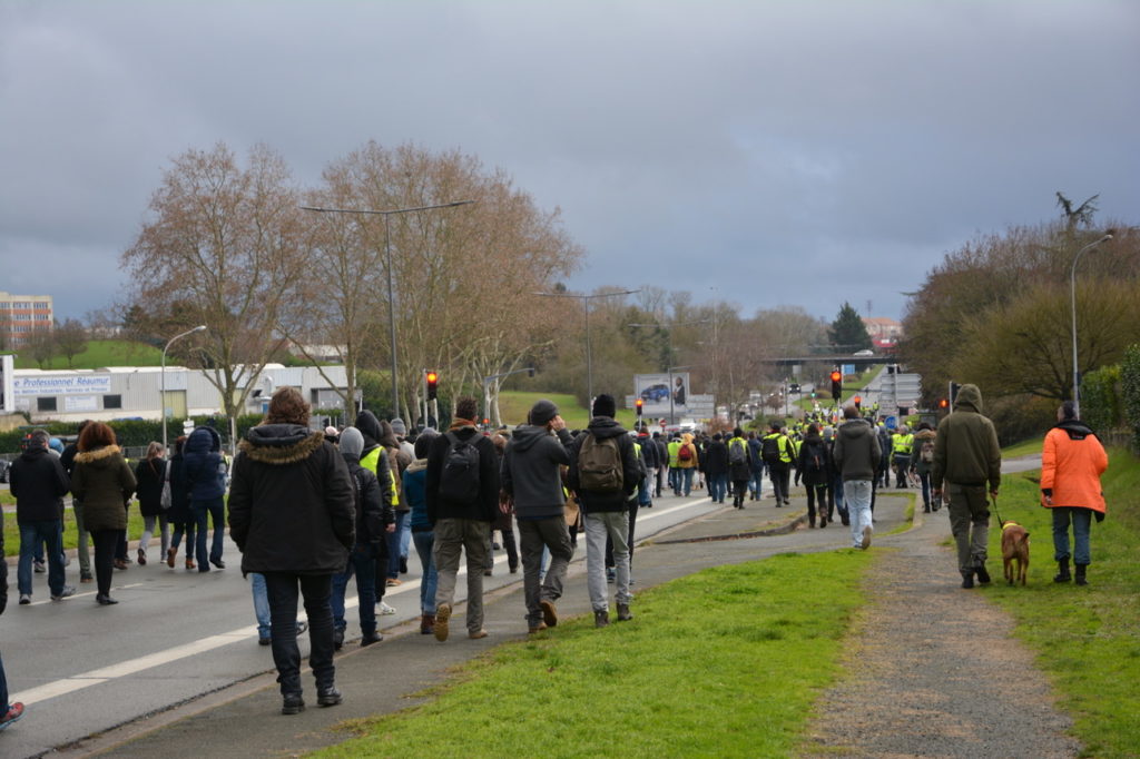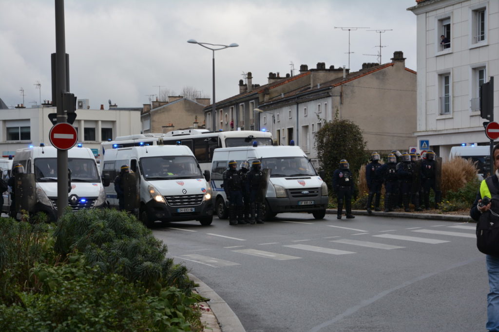 Effectivement, on s’en souviendra du 19 janvier : jamais vu autant de gardiens de l’ordre (de force de la paix ?) à Poitiers. Un déploiement policier sans commune mesure avec la tranquillité affichée de ces manifestant.e.s. Pas autant de policiers que de manifestant.e.s (!) mais, des accès à la place d’armes, en passant par la préfecture, la gare, la porte de Paris, le haut de la rue de Montbernage, l’entrée sur la pénétrante et comme « bouquet final » le pont neuf, on a été gâté…