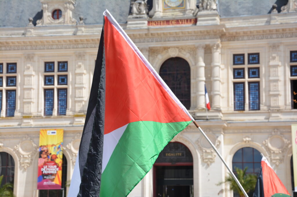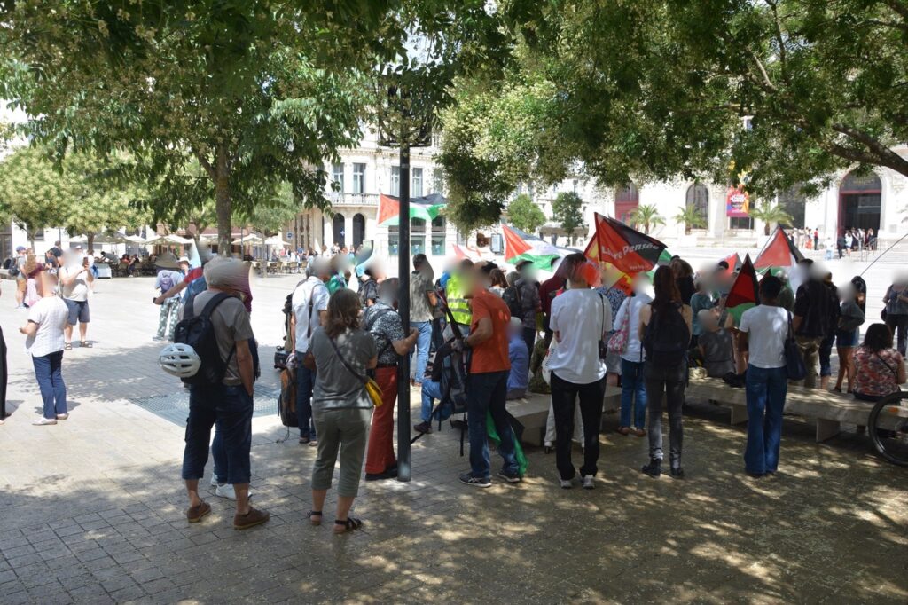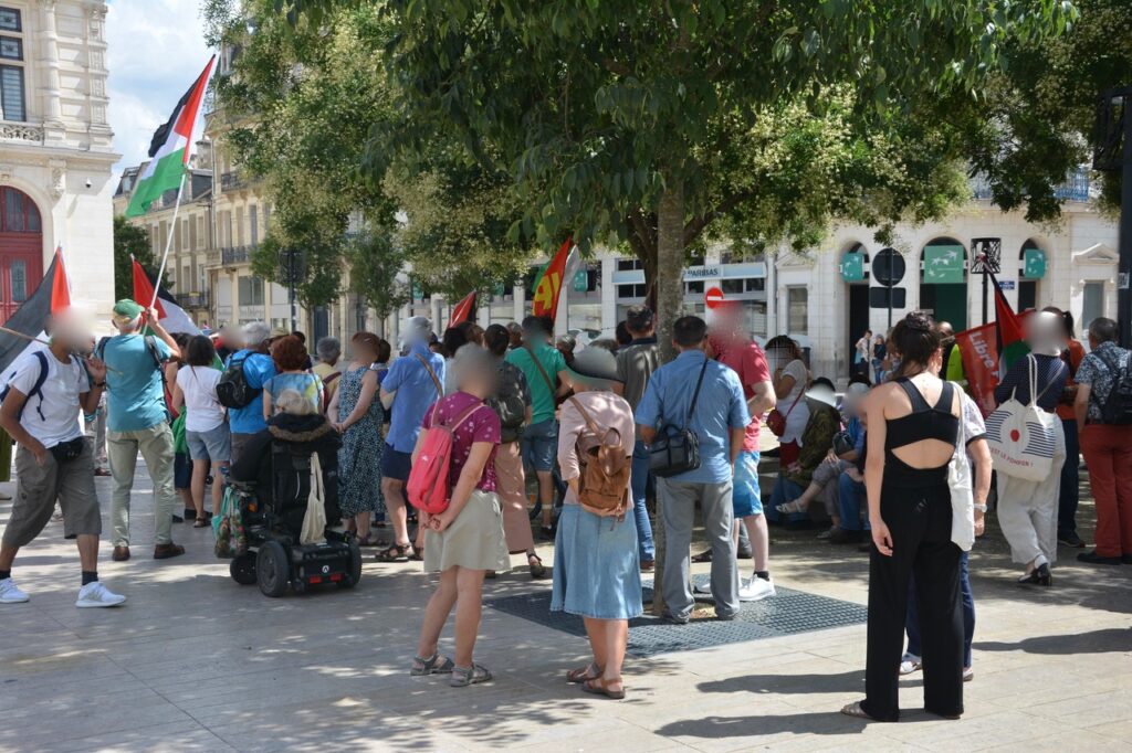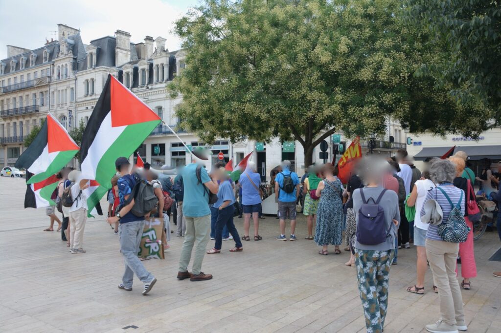 A la suite de la prise de parole au nom de Poitiers Palestine, a été présentée aux quelques 80 à 90 personnes présentes ce samedi 2 août, l’initiative « Thousand madleens to Gaza » en référence au bateau de la solidarité internationale intercepté par l’armée israélienne au large de Gaza.