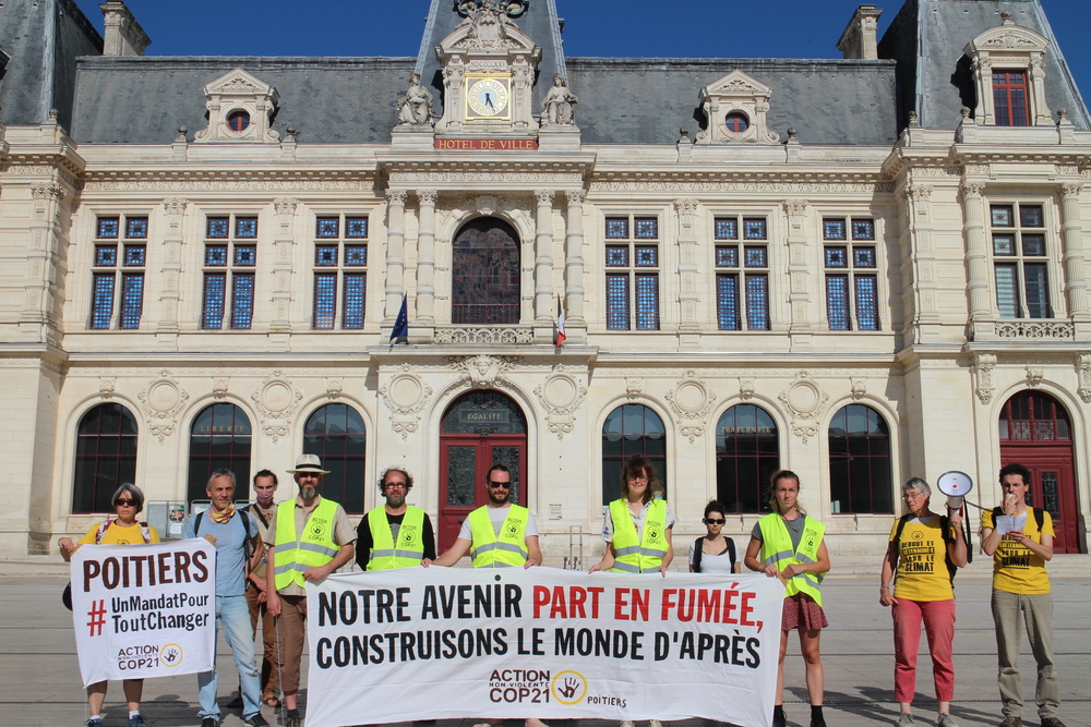 Communiqué de presse d’Action Non-Violente COP21 Poitiers sur l’action de mobilisation citoyenne pour les municipales des 14 membres présent-es.