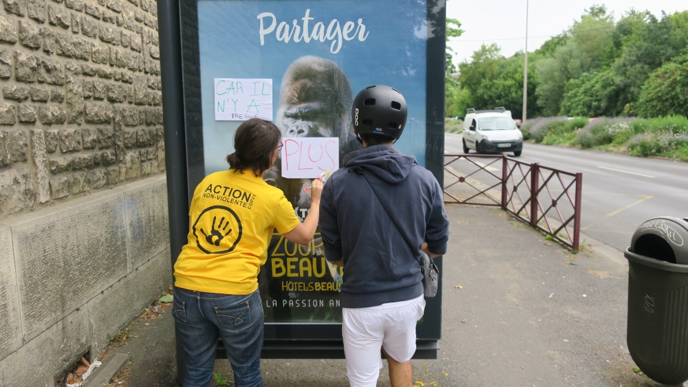 Une action d’expression citoyenne pour une réduction de la pression publicitaire dans Grand Poitiers a été réalisée vendredi 10 juillet par 11 membres de « Action Non-Violente COP21 » et « Extinction Rebellion » Poitiers.
