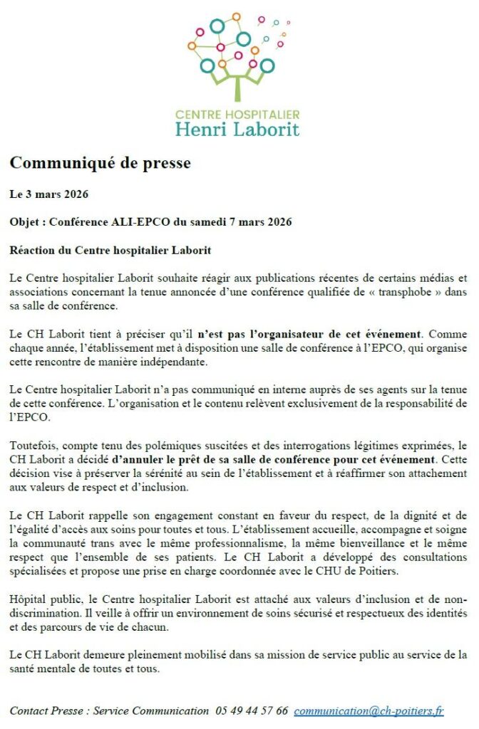 Conférence transphobe. Communiqué Laborit