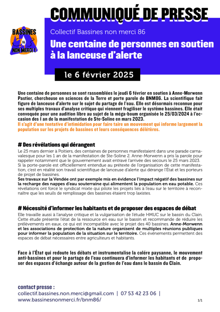 Allocution de « Bassines Non Merci 86 » à la journée contre la répression des mouvements sociaux du 3 décembre