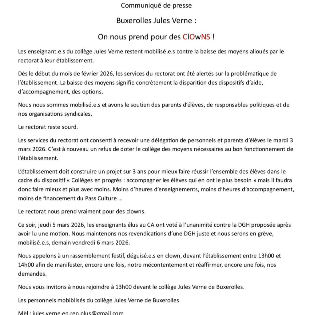 Un communiqué de presse émanant des personnel-les mobilisé-es du Collège Jules Verne de Buxerolles en vue d’une nouvelle journée de grève et de mobilisation.