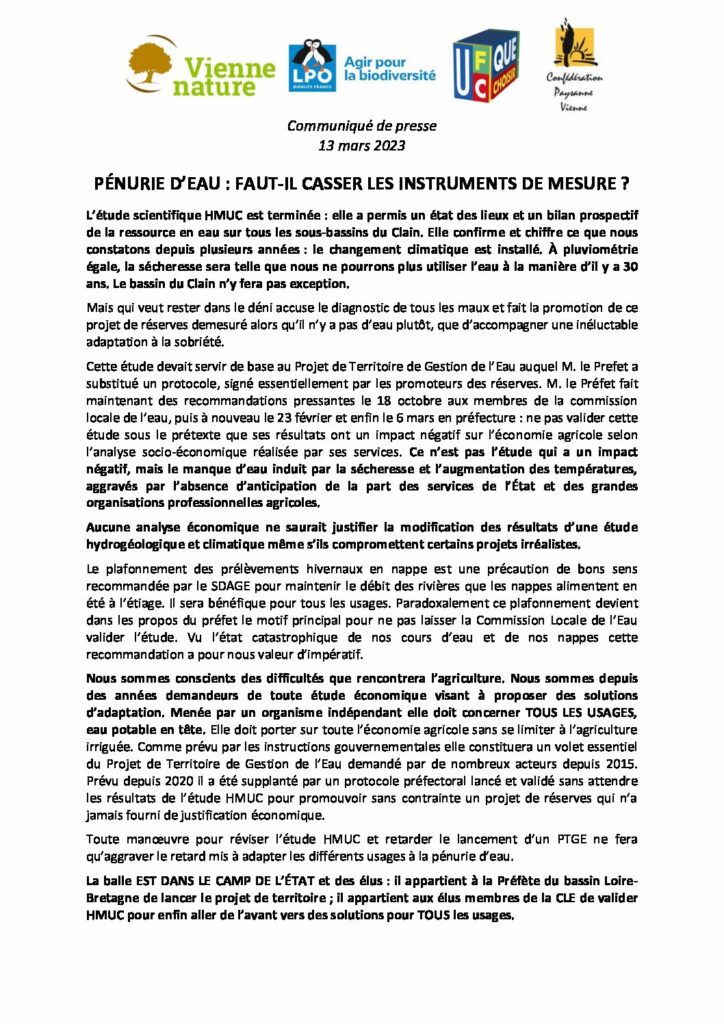 • Communiqué commun. Pénurie d’eau : faut-il casser les instruments de mesure ?