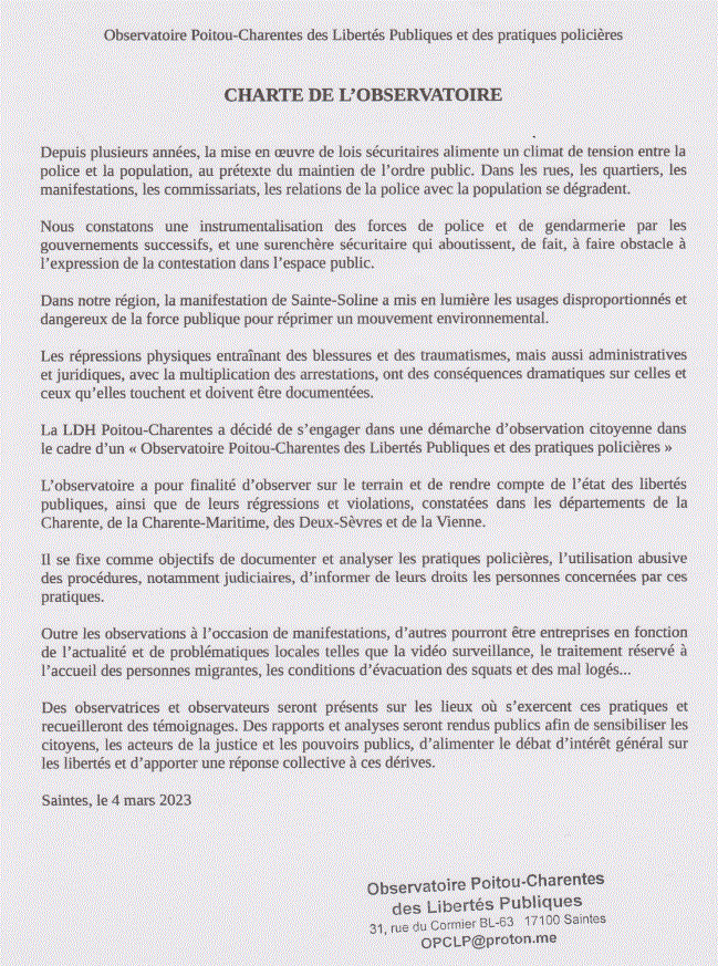 Communiqué de presse Création de l’Observatoire des Libertés Publiques Poitou-Charentes
