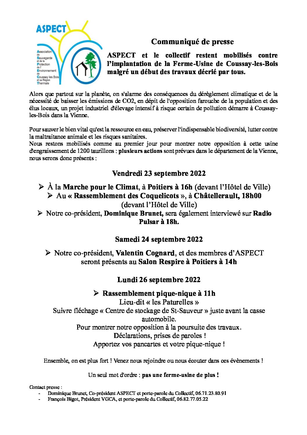 • Des mobilisations contre la ferme des 1200 taurillons à Coussay les Bois