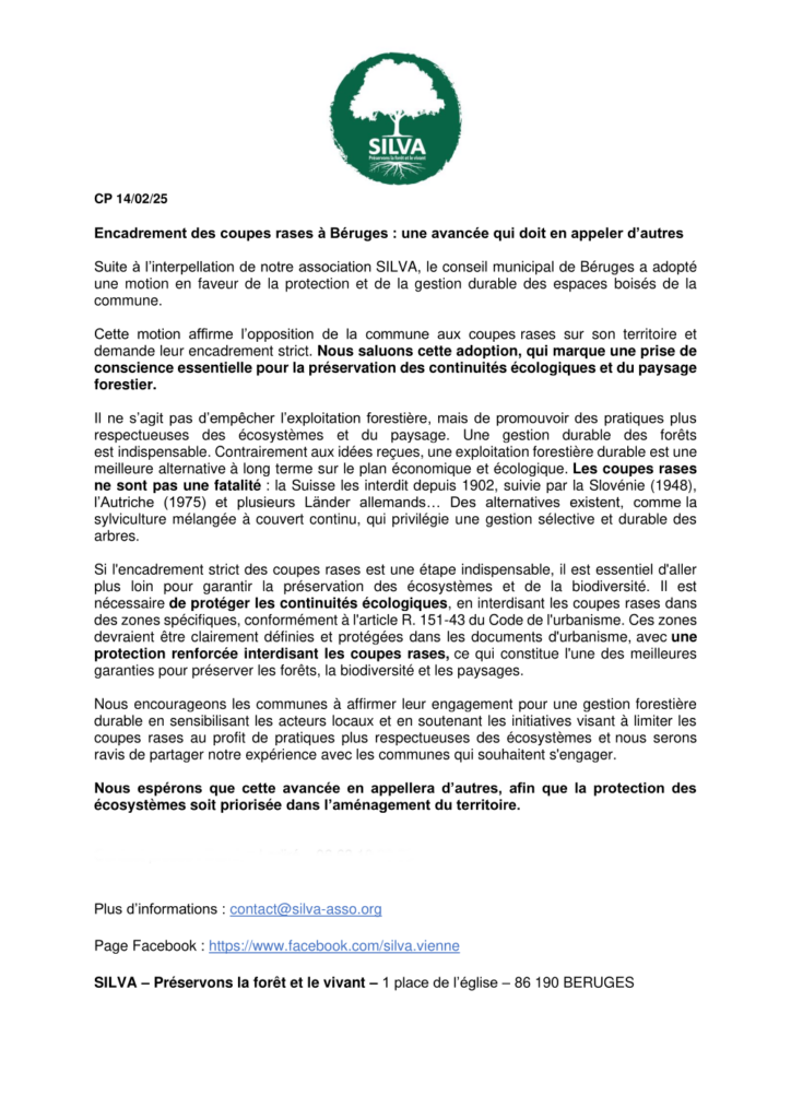 Encadrement des coupes rases à Béruges : une avancée qui doit en appeler d’autre