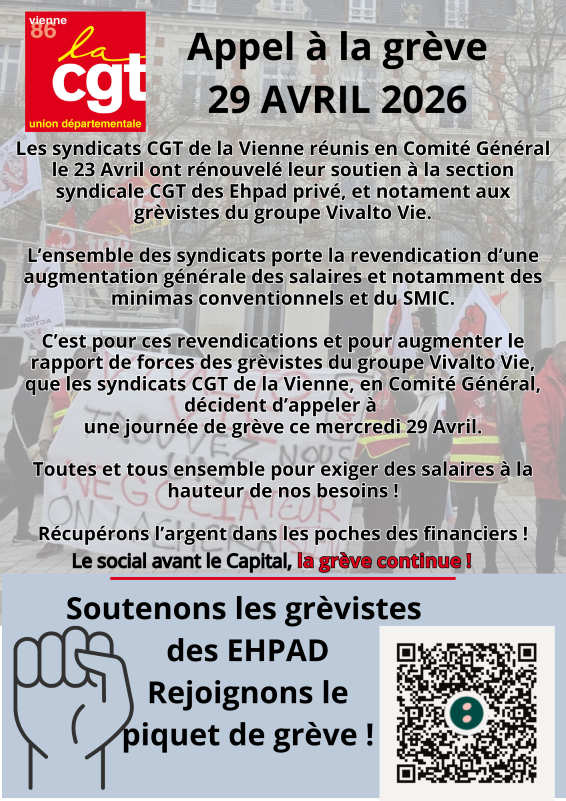 Grève de soutien aux salariées de l’EHPAD Les Feuillants Publié le 29 avril 2026 Communiqués Grève de soutien aux salariées de l’EHPAD Les Feuillants . Partager : Partager sur Facebook(ouvre dans une nouvelle fenêtre) Facebook Envoyer un lien par e-mail à un ami(ouvre dans une nouvelle fenêtre) E-mail Partager sur LinkedIn(ouvre dans une nouvelle fenêtre) LinkedIn Partager sur Telegram(ouvre dans une nouvelle fenêtre) Telegram Partager sur WhatsApp(ouvre dans une nouvelle fenêtre) WhatsApp Partager sur Mastodon(ouvre dans une nouvelle fenêtre) Mastodon Partager sur Bluesky(ouvre dans une nouvelle fenêtre) Bluesky