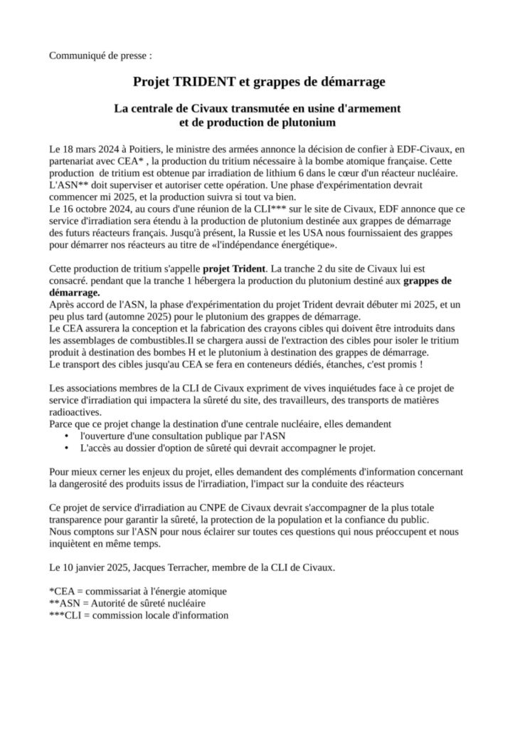 • La centrale de Civaux transmutée en usine d’armement et de production de plutonium