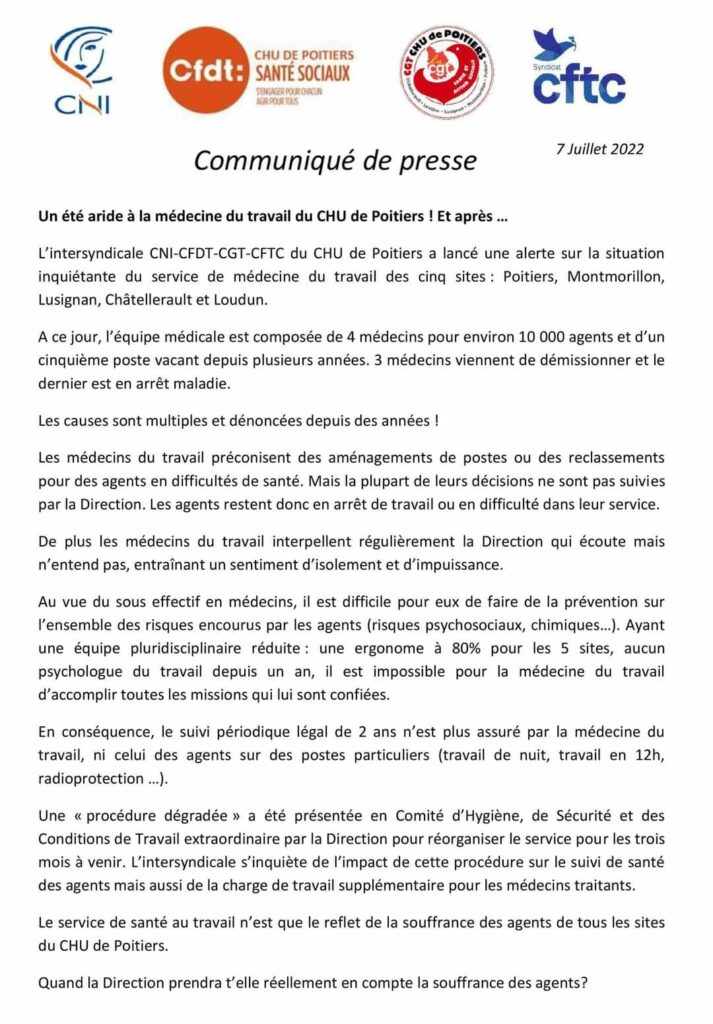 • La médecine du travail maltraitée au CHU de Poitiers…