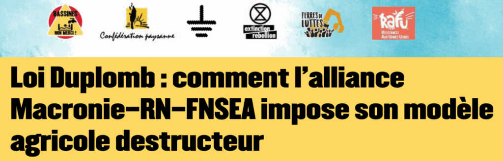 Ce lundi 26 mai, un coup de force s’est joué à l’Assemblée nationale. La proposition de loi « Pour lever les contraintes à l’exercice du métier d’agriculteur », portée par le sénateur Laurent Duplomb et déjà adoptée au Sénat le 28 janvier, devait être examinée à l’assemblée nationale. (…)