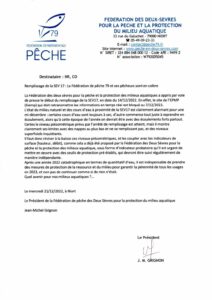 La Fédération de pêche des Deux-Sèvres vient, après celle de Charente-Maritime, de déclarer le scandale du remplissage de la Bassine de Mauzé sur le Mignon alors que le Mignon était assec !