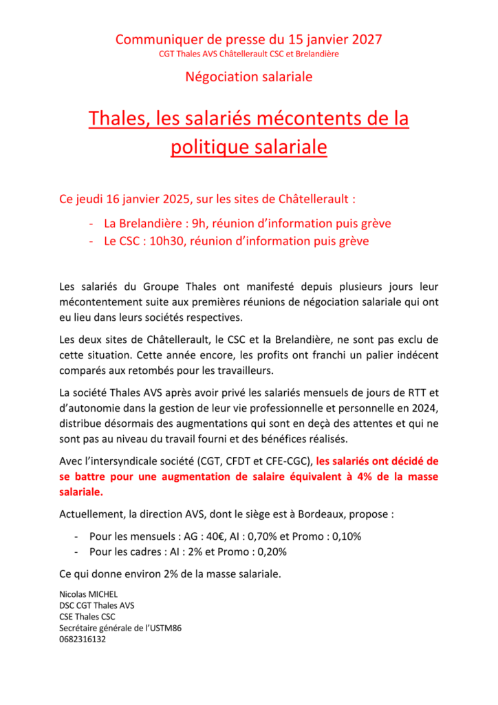 CGT Thales AVS Châtellerault CSC et Brelandière