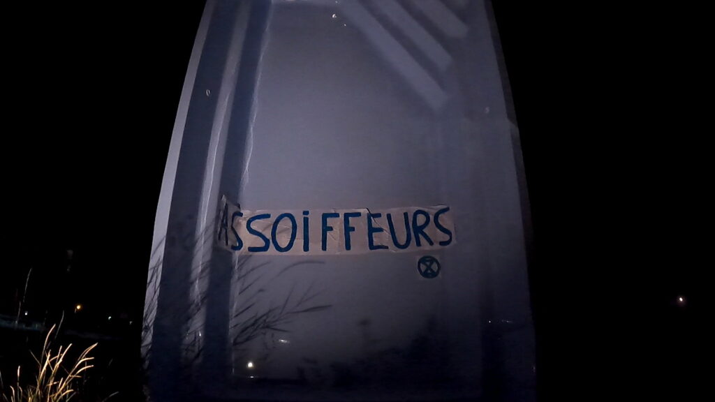 Dans la nuit de samedi à dimanche, les rebelles d’Extinction Rébellion Poitiers ont organisé une action de désobéissance civile non violente visant à dénoncer l’accaparement de l’eau en cette période de sécheresse intense. Plusieurs slogans disant « ASSOIFFEURS » ont été collés à la farine de blé sur des piscines de présentations.
