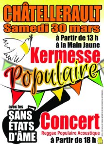 Affiche Kermesse 30 mars 2019 Laisser un commentaireVotre adresse e-mail ne sera pas publiée. Les champs obligatoires sont indiqués avec *Commentaire * Nom E-mail Site web je souhaire recevoir par mail les infos de web 86 ▢ info Δ Ce site utilise Akismet pour réduire les indésirables. En savoir plus sur la façon dont les données de vos commentaires sont traitées. Breaking News web86.info victime de son succès Des sous pour Web86 ! [vidéo] Il y a un an, Lisa Belluco était élue. Une longue interview avec la députée NUPES de la Vienne. Les caisses de grève et de solidarité dans la Vienne [vidéo] Clip de campagne NUPES 86 – V. Soumaille Succès de la compagne de financement participatif de web86.info Financement participatif de web86.info. Ça y est ! C’est parti ! [vidéo] Portrait d’un anticolonialiste conséquent [vidéo] À l’autre bout du monde vivent d’autres humains Extrême-droite dans la Vienne… misère, misère… (1) « Rien n’arrête un peuple qui danse ». La Parade des libertés à Poitiers Règles, menstruations, ragnagna Portrait de militant [Vidéo] Interview de Yves Judde qui a rencontré la sociologie et l’étranger Hélène Heintz Shemwell, activiste écologiste : la marge et la politique [Photos] Le 13 décembre : solidarité, toujours avec la Palestine ! [vidéo] Les 12 et 13 décembre, un marché de créatrices et créateurs pour tous les goûts à Poitiers. Et plus encore [pétition] pour le Maintien des Emplois et des Missions de Réseau Canopé La commande de café zapatiste, c’est maintenant ! Aidons le collectif « Bien Vivre à Celle l’Evescault » contre le futur méga-poulailler de Vaugeton Municipales à Poitiers en 2026 : des cadeaux comme s’il en pleuvait ! (épisode 5)