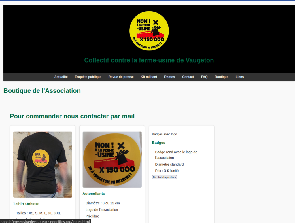 C’est ici : https://nonalafermeusinedevaugeton.neocities.org/boutique
