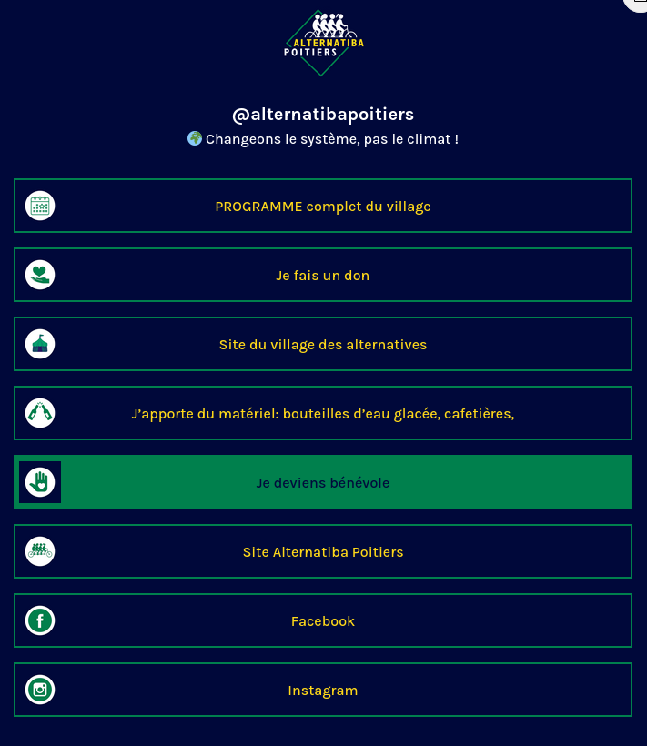 Ce sont deux jours complets de stands, débats, animations, restauration. Alternatiba Poitiers fait donc appel aux bonnes volontés pour donner quelques petites heures sur le week-end pour assurer le succès de ce Village des Alternatives.