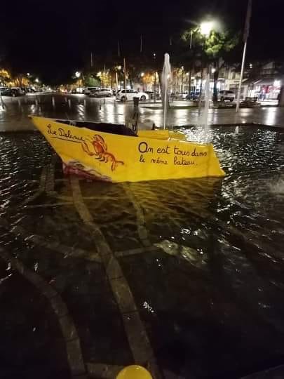 Hommage « clin d’oeil » au commandant Delarue qui a cherché, en vain le bâteau des Gilets Jaunes lors de la traversée de la Vienne l’été dernier.