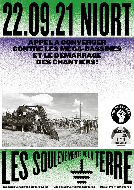 Les collectifs Bassines Non Merci, rejoints par les Soulèvements de la Terre – auxquels prennent part activement la Confédération paysanne et des groupes écologistes, à l’instar de groupes locaux d’Extinction Rebellion et de Youth for Climate – appellent à converger, à pied, à cheval, en voiture, en tracteur, sur Niort et dans le Marais poitevin le 22 septembre prochain. Il s’agit de marquer un front, aussi large que déterminé, contre l’accaparement de l’eau et le démarrage de ces chantiers, pour défendre le Marais et exiger un partage juste de la ressource en eau :