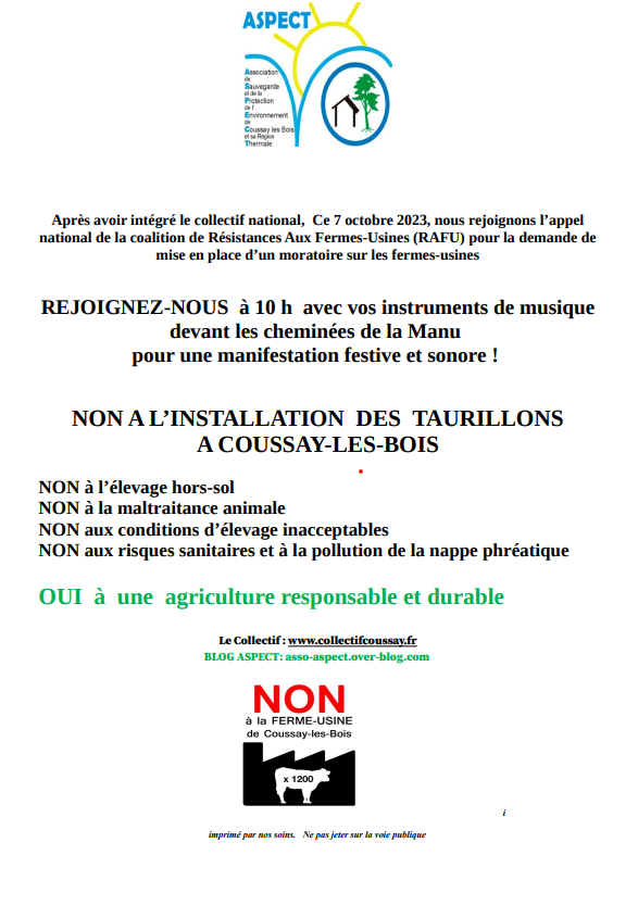 Manifestation festive et sonore à 10h00 à Châtellerault contre toutes les fermes-usines