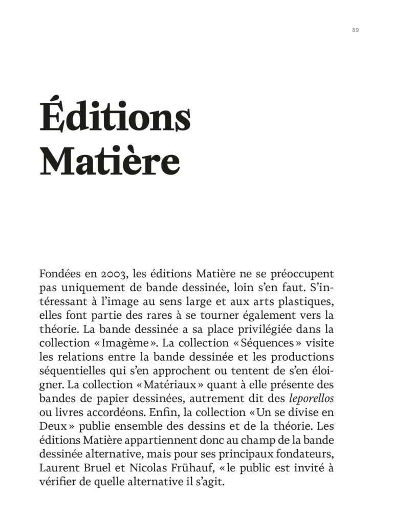 Après la rupture imposée par les éditeurs alternatifs au début des années 1990 (L’Association, Cornélius, Ego comme x, Les Requins Marteaux, Frémok, etc.), une nouvelle génération a vu le jour, de la création d’Atrabile en 1997 à celle d’Adverse en 2016, en passant par les éditions 2024, Biscoto, Çà et là, L’employé du moi, FLBLB, Matière, Misma, Super Loto et The Hoochie Coochie, entre autres. En 20 ans, ces éditeurs ont démultiplié la dynamique enclenchée par leurs aînés, fondée sur une vision de la bande dessinée comme moyen d’expression ouvert et sur un travail éditorial comme champ d’expérimentation décorrélé des logiques de rentabilité.