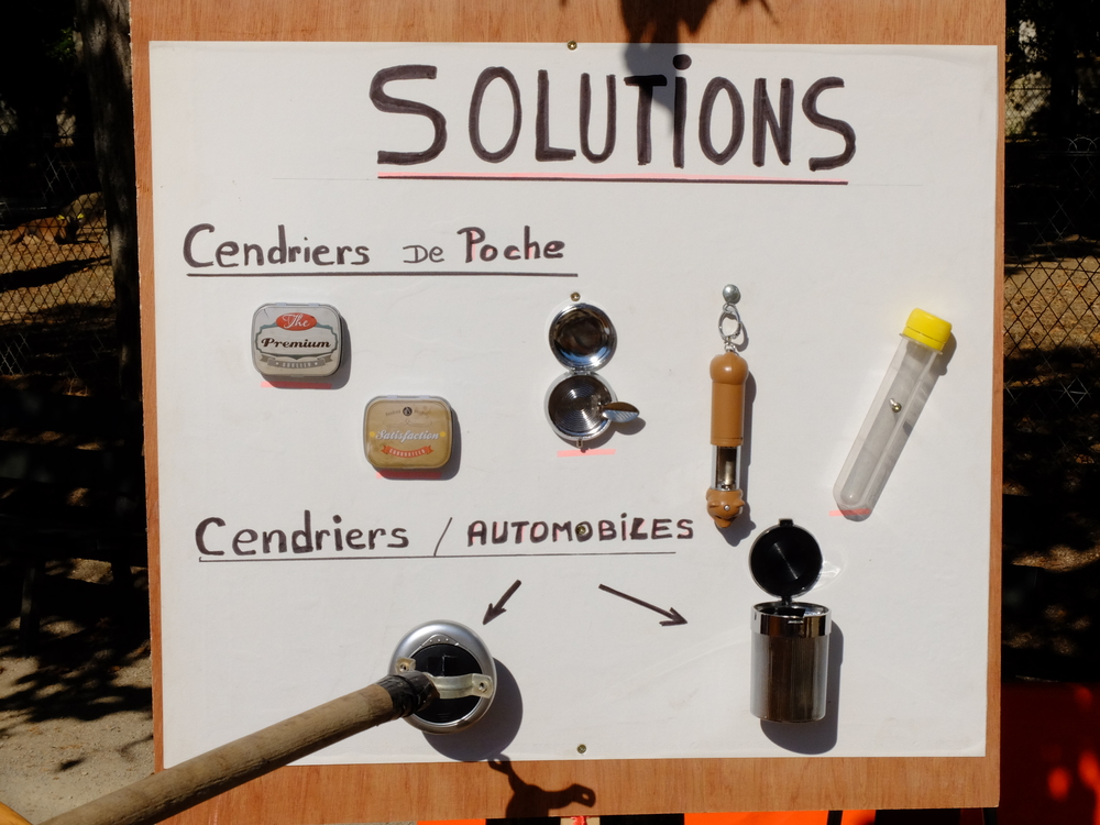 Convaincre les fumeurs et fumeuses de ne plus jeter leurs mégots n’importe où, et les encourager à utiliser les cendriers mis à leur disposition sur la voie publique ou à se munir de cendriers de poche ainsi que de cendriers amovibles dans leurs véhicules