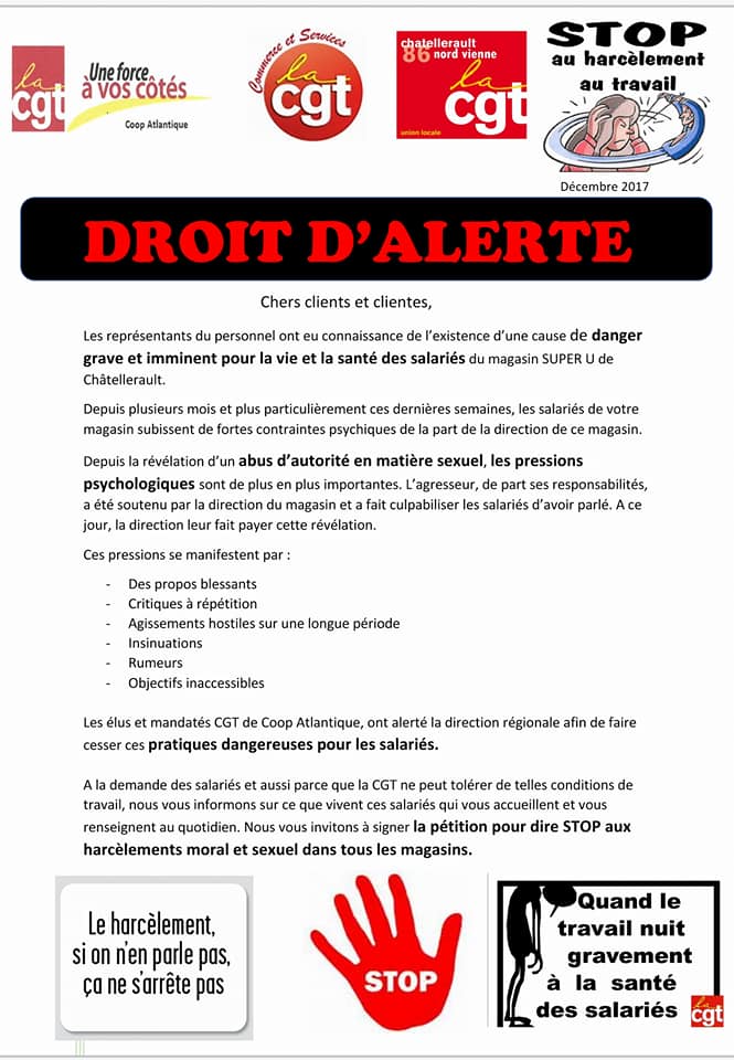 • Châtellerault : la CGT dénonce des faits de harcèlement sexuel et moral au Super U