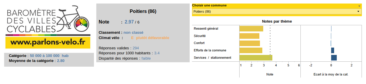 Une note comparative globale est également donnée. Poitiers obtient 2,97/6 et l’appréciation « plutôt défavorable »