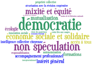 « Une société coopérative d’habitants regroupe des personnes qui veulent gérer et améliorer, ensemble, les logements qu’ils occupent dans un même immeuble ou sur un même terrain. Les valeurs fondamentales sont la propriété collective, la sortie du système spéculatif et la démocratie. »