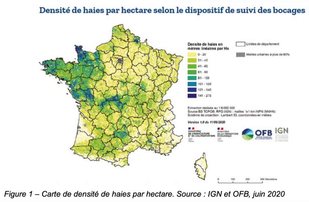 Comme le note ce rapport page 10 : « Depuis les épisodes de remembrements apparus à partir de 1945, 70 % des haies présentes au début du vingtième siècle auraient disparu soit 1,4 million de kilomètres de haies (Pointereau, 2002).