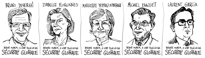 « J’ai [Otto T. dessinateur et éditeur poitevin de bande dessinée] participé un peu à une opération militante à l’initiative de plusieurs dessinateurs et dessinatrices de bande dessinée. Il s’agissait de faire le portrait des 388 députés qui ont voté pour la fameuse loi de sécurité globale. Les dessins ont été réalisés en un temps record (à peine deux jours), par une trentaine de dessinateurices (j’en ai fait 5), puis diffusés sur les réseaux sociaux (c’est con, j’en ai pas, c’est mon amie Lénon qui s’est occupée des miens).