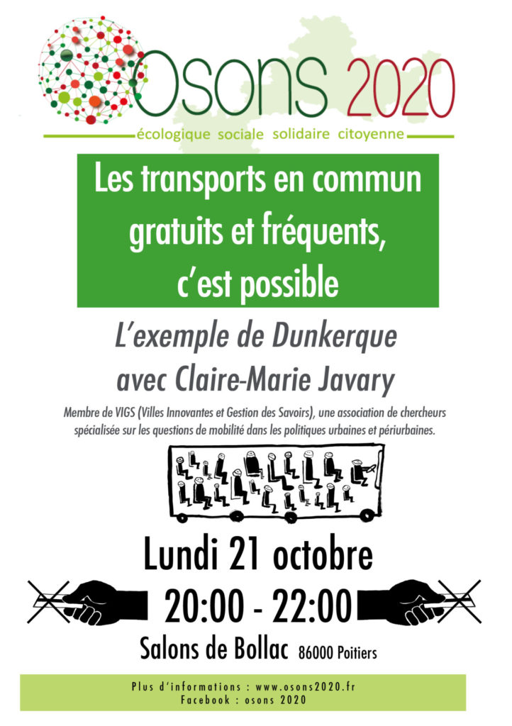 Conférence débat avec la chercheuse Claire Marie Javary qui a particulièrement étudié la mise en place de la gratuité et ses conséquences à Dunkerque