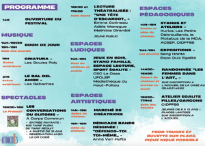 Le 28 septembre 2024, le CIDFF86 organise la 1ère édition de son festival Les Affranchi.E.s, un festival convivial, pédagogique, ludique et familial afin de développer la culture de l’égalité.