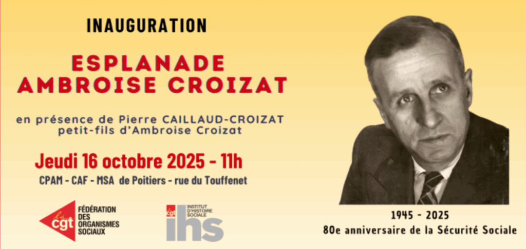 Jeudi 16 octobre à 11 h : Inauguration de l’esplanade Ambroise Croizat. CPAM-MSA, rue de Touffenet à Poitiers.