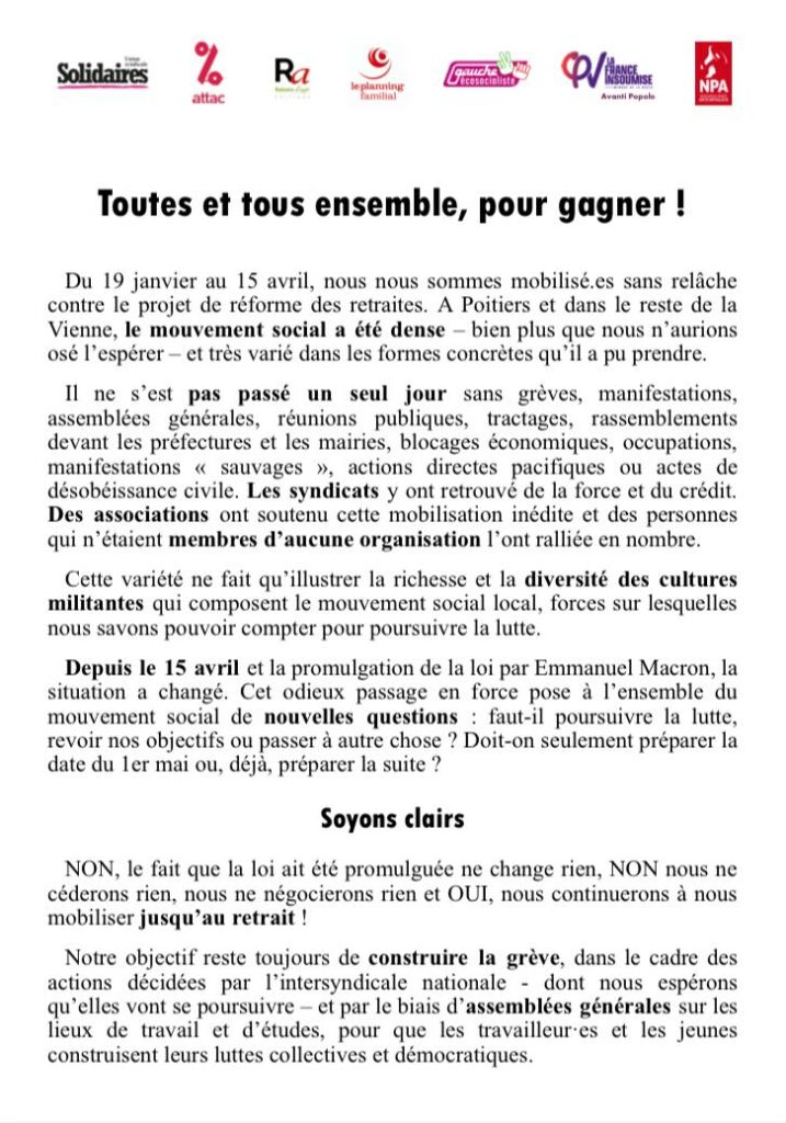 Poitiers. Contre la politique migratoire du gouvernement, pour les livreurs sans-papiers